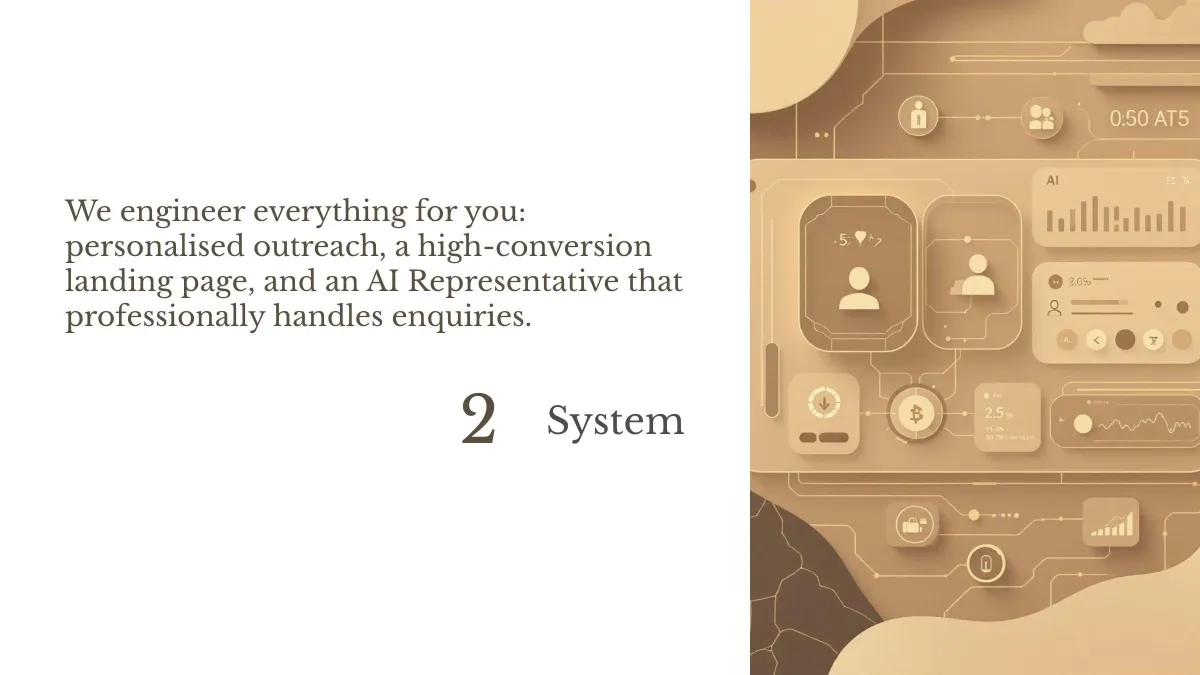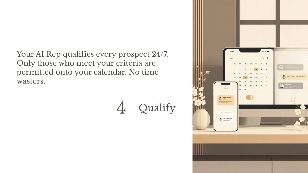 Harnessing AI, we find your ideal clients, qualify them, and place confirmed appointments directly on your calendar. Fully Managed. Zero effort.